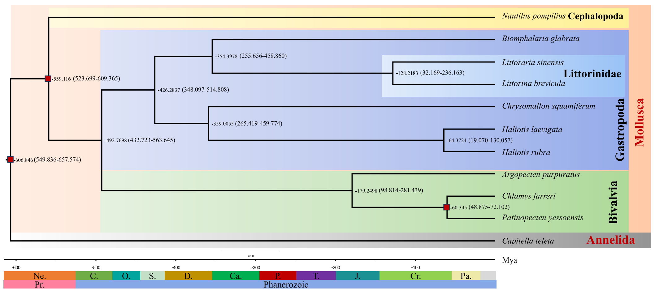 通過(guò)比較基因組學(xué)分析構建了包括兩種濱螺在內的11個(gè)物種的系統發(fā)育樹(shù),并估算兩種濱螺的分化時(shí)間大約在128.22Mya前。進(jìn)一步的研究結果表明與刺激反應、代謝過(guò)程、先天免疫和抗氧化反應相關(guān)的基因或基因家族可能在濱螺應對潮間帶多種環(huán)境因子脅迫的過(guò)程中發(fā)揮著(zhù)重要作用,受損核酸和蛋白的修復或降解可能是濱螺在多重壓力下抵抗細胞凋亡、維持細胞內穩態(tài)的主要方式。相關(guān)研究結果為潮間帶無(wú)脊椎動(dòng)物適應性進(jìn)化分子機制的后續研究提供了基礎。