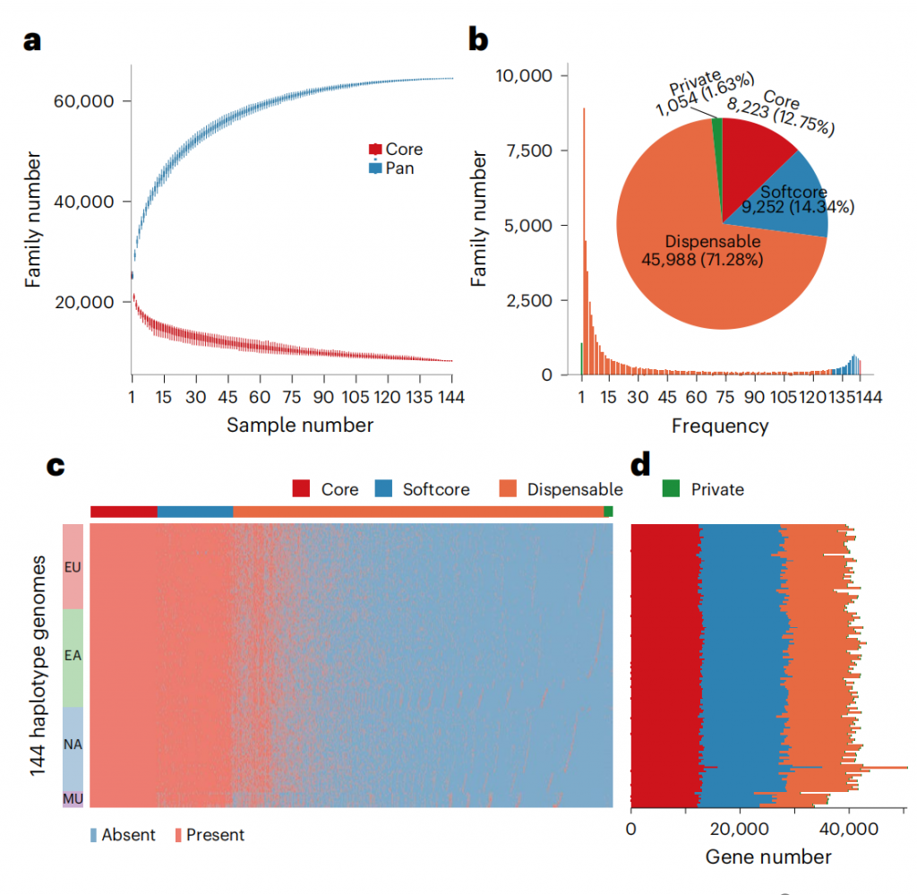葡萄作為最古老的馴化作物之一(約公元前11,000年),漫長(cháng)的持續馴化和多年的育種改良導致現代葡萄品種的遺傳多樣性縮小和抗性丟失,使其易受病蟲(chóng)、逆境等各種不利條件的影響。近年北美葡萄泛基因組(Genome biology, 2023),歐洲葡萄泛基因組(Nature Genetics, 2024)的相繼報道,野生葡萄以其豐富的遺傳多樣性和超強的抗性基因再次受到關(guān)注,但以大群體染色體級基因組組裝為基礎,涵蓋主要品種,特別是包含東亞野生種葡萄的屬級泛基因組一直未見(jiàn)報道。因此構建涵蓋整個(gè)葡萄屬的泛基因組將成為了解葡萄遺傳多樣性、開(kāi)展功能基因組學(xué)研究、識別隱性遺傳特性以及葡萄精準改良的關(guān)鍵資源。