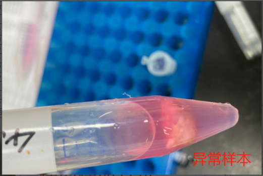 2)震蕩混勻,常溫裂解 5 min 后,使用低溫離心機12000g離心10min,將上清液轉至新的2.0ml離心管中(拍質(zhì)控照片,方便核查),轉移至-80℃低溫保存,運輸時(shí)選擇干冰寄送
