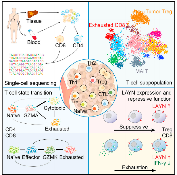 2017年,張澤民院士研究組,通過(guò)大規模單細胞測序技術(shù)對肝癌相關(guān)T淋巴細胞進(jìn)行分析,首次在單細胞水平上描繪肝癌微環(huán)境中免疫細胞圖譜,發(fā)現了肝癌免疫療法的潛在靶點(diǎn),也為我們從多角度系統性理解肝癌T淋巴細胞特征奠定了基礎。(2017,Cell,Landscape of Infiltrating T Cells in Liver Cancer Revealed by Single-Cell Sequencing)