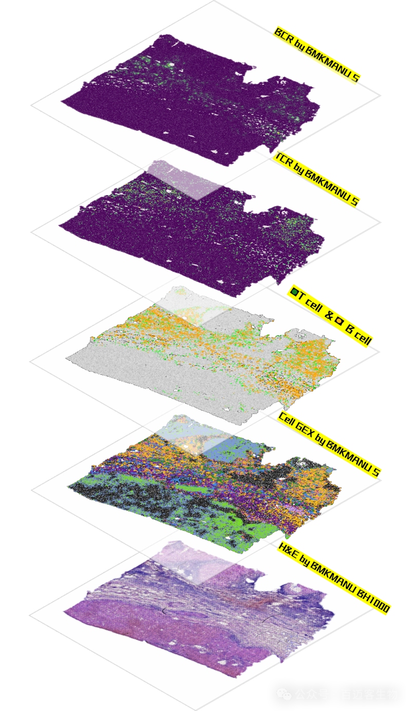2024年12月,百邁客生物智能制造以廣受市場(chǎng)好評的亞細胞級S系列空間轉錄組芯片為依托,開(kāi)發(fā)出了在原片上可同時(shí)捕獲3’端轉錄組信息以及全長(cháng)B細胞受體(BCR)和T細胞受體(TCR)序列的空間T/BCR測序技術(shù)產(chǎn)品—BMKMANU?S3000-VDJ?,將填補這一技術(shù)產(chǎn)品的缺口。