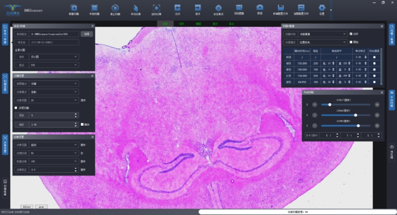 在生命科學(xué)的探索之旅中,技術(shù)的每一次革新都是我們深入理解生命奧秘的堅實(shí)基石。百邁客生物推出顯微掃描儀領(lǐng)域的旗艦力作——BH1000掃描儀,它將引領(lǐng)我們邁入空間組學(xué)成像的新紀元。BH1000掃描儀不僅可以實(shí)現人體、動(dòng)物、植物以及各類(lèi)玻片標本的快速全切片掃描成像,更以其卓越的性能全面滿(mǎn)足百創(chuàng )空間組學(xué)實(shí)驗的高端成像需求。其可以實(shí)現明場(chǎng)以及熒光的原片高清無(wú)錯成像,結合百創(chuàng )S空間系列細胞分割算法,能夠實(shí)現精準的空間單細胞分割,為空間組學(xué)細胞層面的研究提供了強有力的支持。