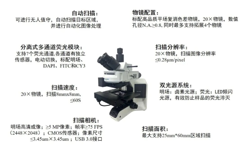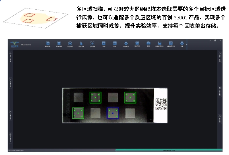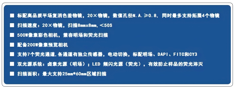 50S內可完成8mm*8mm 20X掃描,支持掃描25mm*60mm,原片明場(chǎng)及原片熒光成像