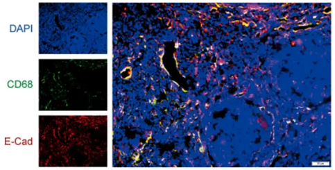 慢性肉芽腫病(Chronic?Granulomatous?Disease,?CGD)是一種由NADPH氧化酶2(NOX2)復合體功能缺失突變引起的原發(fā)性免疫缺陷病。這種缺陷會(huì )導致產(chǎn)生ROS的多種先天免疫細胞受到損害,機體抵御微生物的能力下降,導致CGD患者易發(fā)生反復感染和過(guò)度炎癥反應。本研究通過(guò)構建自然CGD小鼠模型,結合單細胞轉錄組(scRNA-seq)和空間轉錄組技術(shù)(包括BMKMANU?S1000平臺),深入解析了CGD肺部肉芽腫形成的細胞與分子機制,從CGD肺肉芽腫組織中鑒定出具有NOS2高表達特征的中性粒細胞和MMP12+巨噬細胞,并提出MIF和Morbidity為CGD治療的潛在靶點(diǎn)。