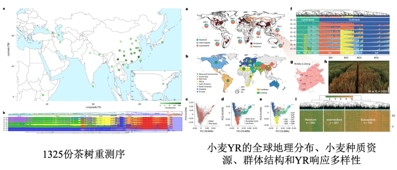 群體重測序與多組學(xué)(轉錄組、代謝組、表觀(guān)組等)的聯(lián)合應用,是解析植物復雜性狀遺傳機制、挖掘優(yōu)異基因的核心技術(shù)范式,尤其在植物育種與物種演化研究中價(jià)值突出。例如,在水稻紋枯病抗性研究中,通過(guò)對178份商業(yè)水稻進(jìn)行測序和人工接種,結合GWAS分析與重測序,發(fā)現了天然優(yōu)勢等位基因SBRR1,并完成遺傳機制解析和基因功能驗證;在小麥條銹病研究中,對來(lái)自全球2,191個(gè)小麥種質(zhì)的變異組數據和超過(guò)47,000條跨多種環(huán)境和病原菌品系的YR抗性數據,利用GWAS分析分析抗性基因位點(diǎn),克隆抗性基因并評估其有效性;在1325份茶樹(shù)及其近緣種重測序研究中,揭示茶樹(shù)與其近緣種的遺傳分化、進(jìn)化瓶頸、種間基因滲入以及野生資源保護現狀,同時(shí)結合GWAS和mGWAS鑒定了葉片形態(tài)、兒茶素、咖啡因等農藝性狀及風(fēng)味代謝物的關(guān)鍵候選基因;在甜橙的起源與在馴化研究中,收集測序226份柑橘材料,組裝了甜橙和酸橙的T2T基因組以及4個(gè)相關(guān)柑橘品種的基因組,明確甜橙起源于酸橙與柑橘的雜交。