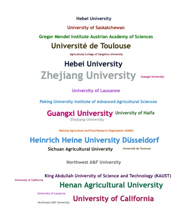 2025年Nature Genetics植物類(lèi)文章發(fā)表單位以中國科研機構為主導,在全球39篇植物科學(xué)領(lǐng)域的文章中,第一單位來(lái)自中國的文章達30篇,占總數的約77%。核心單位包括南京農業(yè)大學(xué)、華中農業(yè)大學(xué)、中國農業(yè)大學(xué)、浙江大學(xué)、中國農業(yè)科學(xué)院棉花研究所、北京大學(xué)現代農業(yè)研究院等;國際合作方面,加州大學(xué)戴維斯分校、以色列海法大學(xué)、比利時(shí)根特大學(xué)、澳大利亞莫納什大學(xué)等機構較活躍。