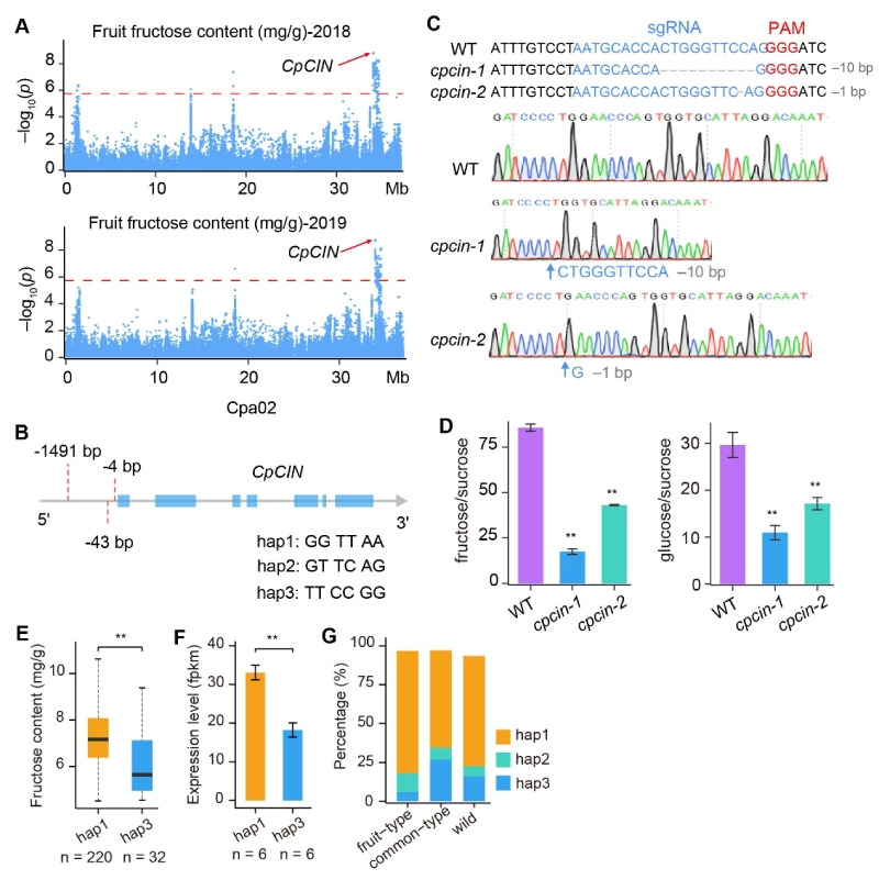圖2.?CpCIN啟動(dòng)子變異調控番木瓜果實(shí)果糖含量