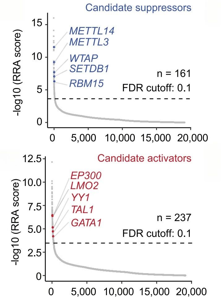 值得注意的是,m6A甲基轉移酶復合物組分METTL3和METTL14位列抑制因子前列,而著(zhù)名的造血調控因子LM02則是最重要的激活因子之一。研究人員通過(guò)FACS和RNA-seq驗證了這些因子對內源性SVA表達的調控作用,發(fā)現這些調控具有SVA位點(diǎn)特異性和協(xié)同性。