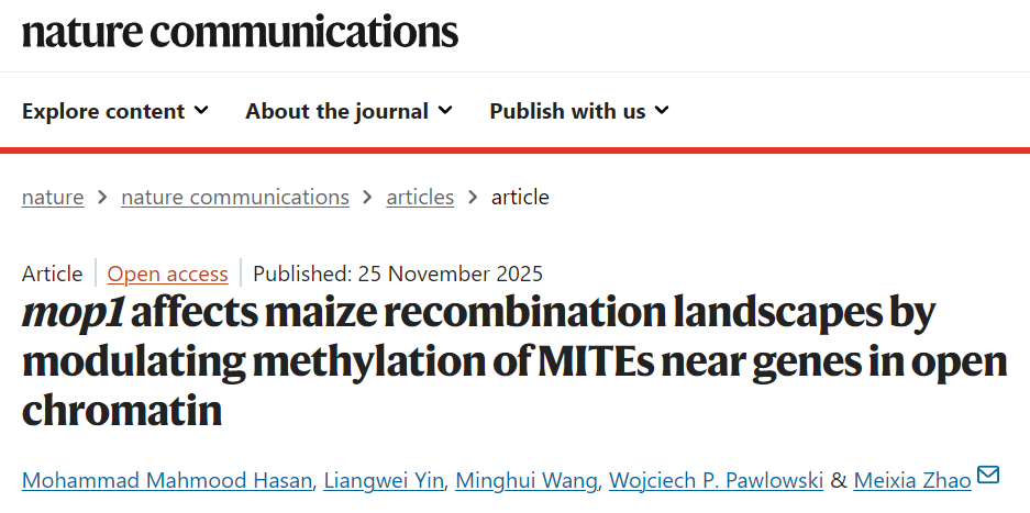 近日,佛羅里達大學(xué)的Meixia?Zhao教授團隊在國際頂尖期刊《Nature?Communications》上發(fā)表了題為“mop1?affects?maize?recombination?landscapes?by?modulating?methylation?of?MITES?near?genes?in?open?chromatin”的研究論文。