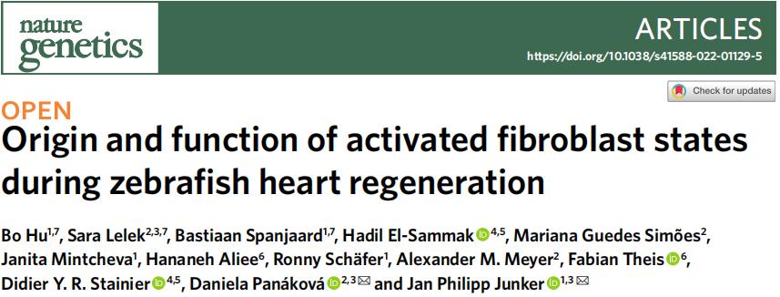 成年哺乳動(dòng)物的心臟損傷通常會(huì )導致永久性瘢痕。然而,成年斑馬魚(yú)心臟損傷后能有效再生,這使得斑馬魚(yú)成為研究心臟再生細胞和分子機制的理想模型。在模擬心肌梗塞的低溫損傷后,受傷的斑馬魚(yú)心臟會(huì )經(jīng)歷一個(gè)短暫的纖維化期。在此期間,受損的心肌會(huì )通過(guò)去分化和增殖進(jìn)行再生,這與心肌梗死的某些方面相似。然而,在以往的斑馬魚(yú)心臟再生研究中,還沒(méi)有系統的數據來(lái)確定再生細胞的狀態(tài)和細胞類(lèi)型的起源,對再生生態(tài)位的細胞組成、潛在的信號傳遞和相互作用的認識仍不全面。目前對活化巨噬細胞和成纖維細胞的定義嚴重依賴(lài)于轉基因,可能受到觀(guān)察偏差的影響,從而低估斑馬魚(yú)心臟再生過(guò)程中細胞狀態(tài)的復雜性。