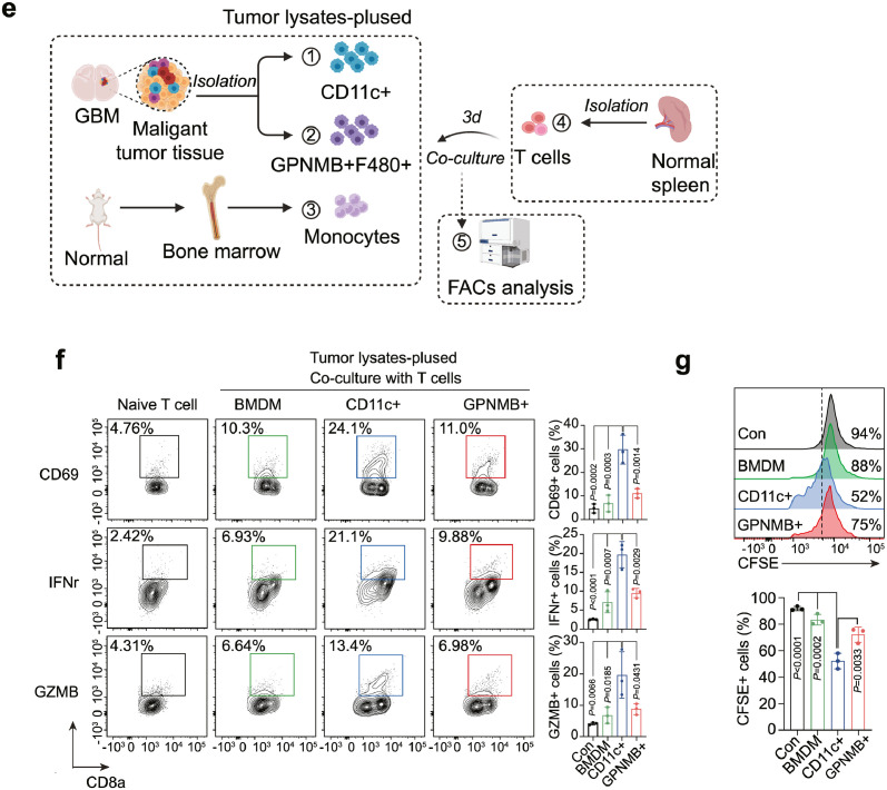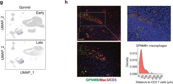 4、通過(guò)信號轉導分析和細胞共培養研究,進(jìn)一步揭示了這些源自單核細胞的GPNMB高巨噬細胞亞群可能無(wú)效地保留T細胞不被樹(shù)突狀細胞激活,提示未來(lái)靶向GPNMB-high巨噬細胞的聯(lián)合免疫治療可作為有潛力的治療策略。