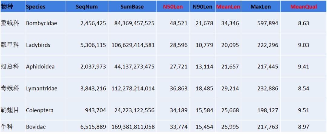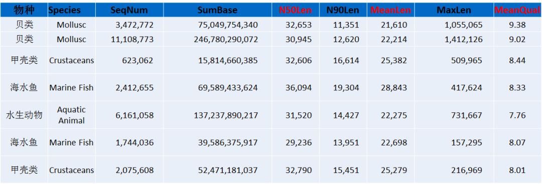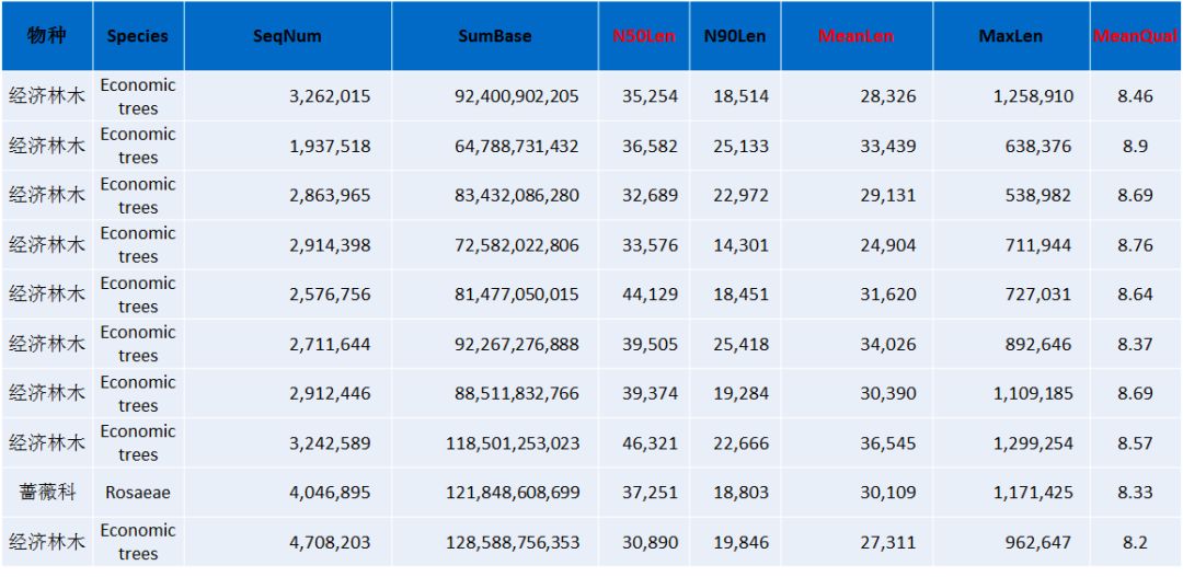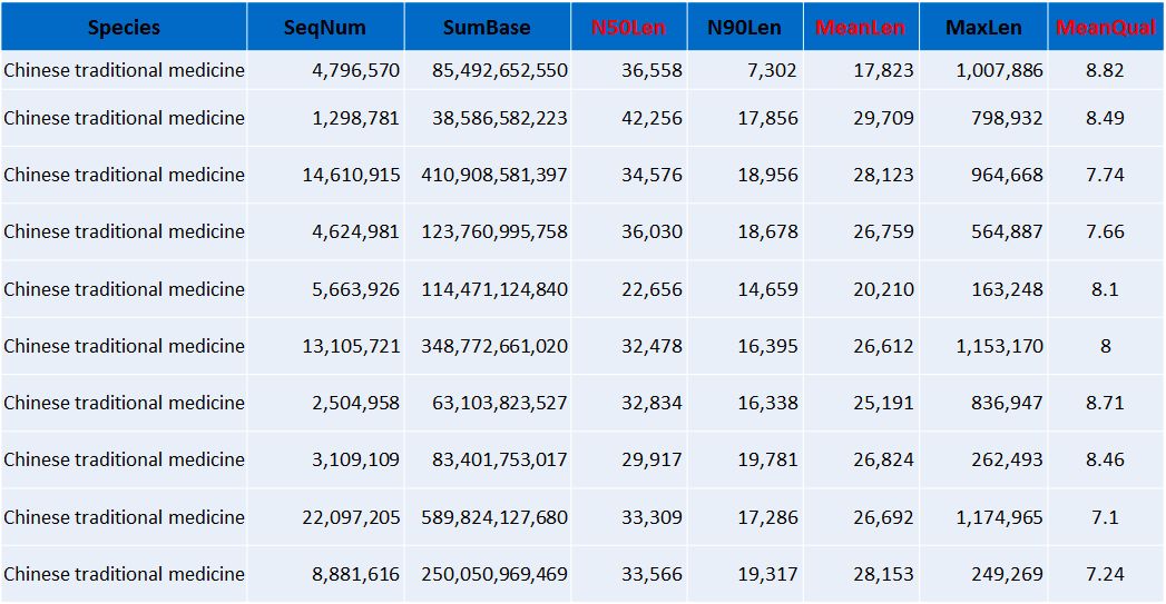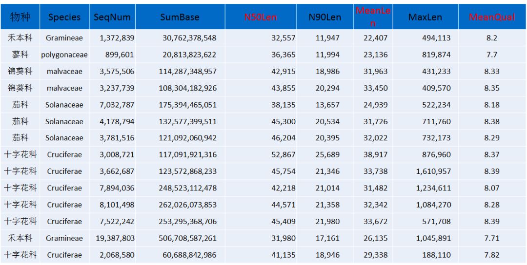 以上是總結的部分作物類(lèi)、林木類(lèi)、動(dòng)物、水產(chǎn)和中藥材的下機數據結果展示,從以上的數據不難看出,平均raeds長(cháng)度幾乎均在20Kb以上,最長(cháng)reads高達1.6Mb以上(不同樣品DNA抽提難易程度不同,會(huì )造成一定的影響)。