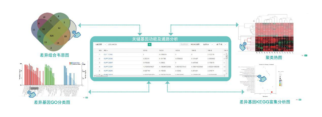 答:可從所有基因,差異基因及SNP三個(gè)方面進(jìn)行數據挖掘。所有基因可通過(guò)功能注釋信息,基因ID,基因名稱(chēng),序列信息幾個(gè)方面進(jìn)行挖掘,同時(shí)還可以做表達基因集維恩圖,WGCNA等分析。差異基因則可通過(guò)維恩圖分析不同處理批次幾個(gè)差異組合共同的差異基因;通常表達量變化趨勢一致的基因,可能會(huì )有相似的功能,故可通過(guò)基因共表達趨勢分析來(lái)進(jìn)行差異基因的深入挖掘。SNP則可通過(guò)PCA分析,系統進(jìn)化樹(shù),樣品間差異SNP篩選及目標區域SNP查詢(xún)等進(jìn)行挖掘。以上這些分析均可在我公司云平臺免費完成。