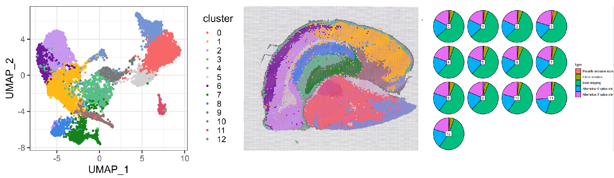 二代與三代數據的UMI/Gene counts per spot的相關(guān)性還是tSEN/UMAP的降維聚類(lèi),都顯示具有非常高的一致性。這充分說(shuō)明百創(chuàng )S1000-Nanopore全長(cháng)轉錄組產(chǎn)品完全可以獨立進(jìn)行數據的拆分與挖掘分析,無(wú)需依賴(lài)NGS數據的校正。