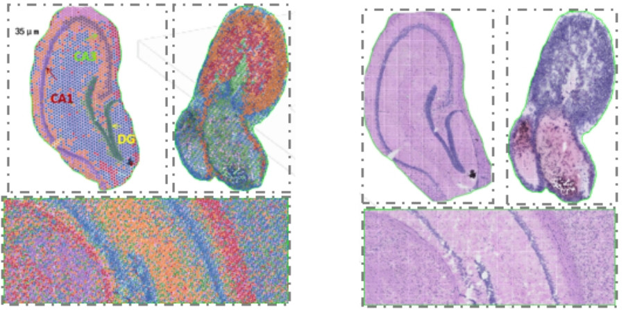 百創(chuàng )S1000空間轉錄芯片保留原片HE染色,結合高分辨率的spots聚類(lèi),能得到更為精準的結果。