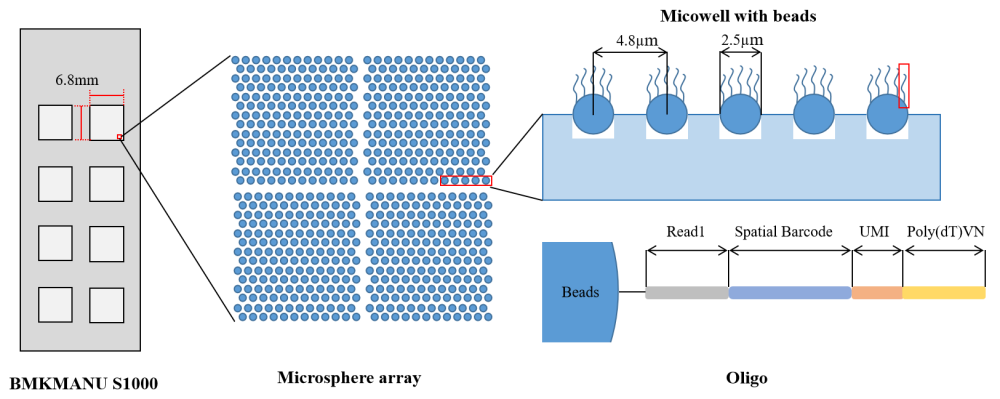 產(chǎn)品基于百創(chuàng )S1000亞細胞級空間轉錄組芯片與ONT測序平臺相結合,利用ONT平臺的超長(cháng)讀長(cháng)與S1000較傳統平臺而言更長(cháng)的Spatial Barcode(70bp),在后續的數據拆分無(wú)需依賴(lài)NGS的數據。除空間位置基因表達情況外還可以獲得基因結構信息的空間位置。